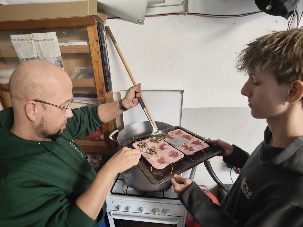 Ein echtes Highlight war die Herstellung unserer Fettfiguren. Die Kinder haben rund 100 Stück produziert. Das ist eine beachtliche Menge und zeigt, wie engagiert die Kinder bei der Sache waren. Die Arbeit am warmen Fett war zwar etwas anspruchsvoller, doch die Kinder blieben geduldig und kreativ. Durch gutes Teamwork und klare Absprachen haben die Kinder die Aufgabe sicher und erfolgreich gemeistert.