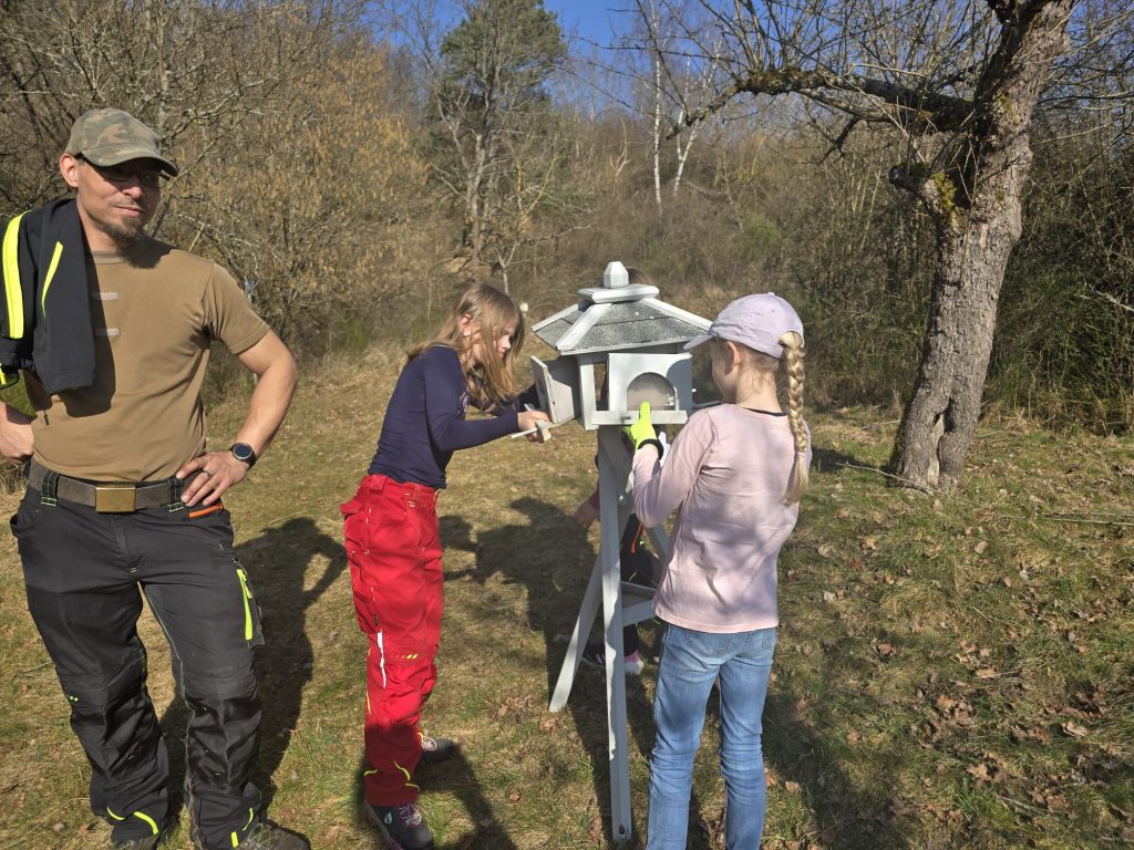 Zu guter Letzt wurde noch ein Vogelhäuschen auf der Streuobstwiese aufgestellt, was der Jugendgruppe dankenswerterweise gespendet wurde.
