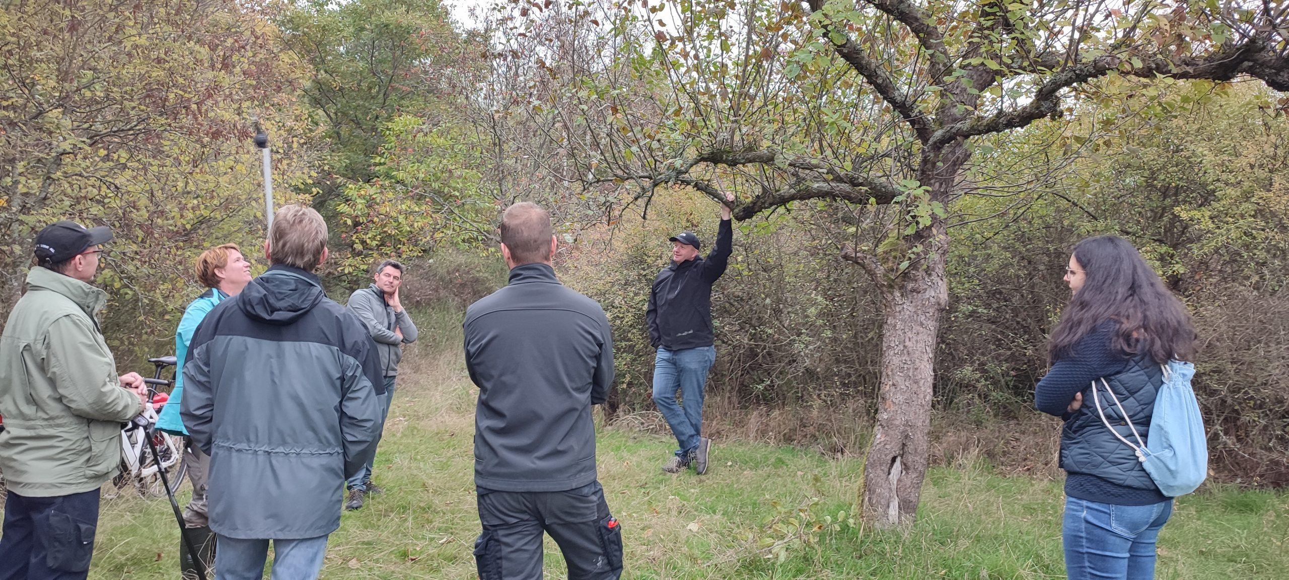 Am 08.10.2022 hat die Vogel- und Naturschutzgemeinschaft Katzenfurt e.V. erneut einen kostenlosen Baumschnittlehrgang veranstaltet. Bei bestem Wetter fanden sich einige interessierte Besucher bei uns im Volkersbach ein, um zu Lernen, wie man alte Obstbäume korrekt schneidet. Bevor es losging haben wir uns angeschaut wie sich die Bäume, welche im Frühjahr geschnitten wurden, mittlerweile entwickelt haben.