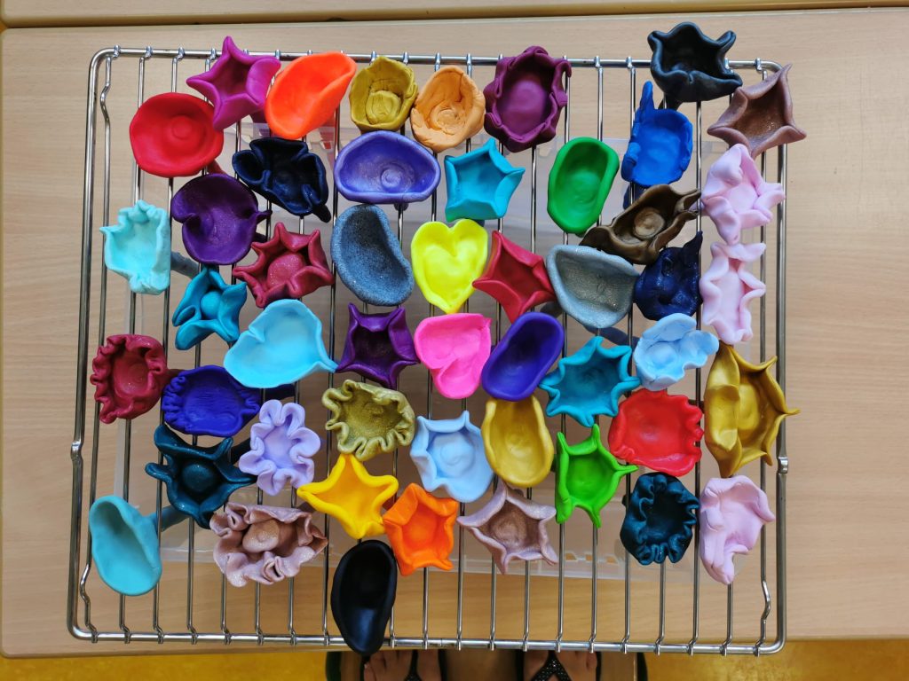 Anschließend ging es dann zum spaßigen Bastelteil über. Passend zum aktuellen Sommerwetter haben wir es uns zur Aufgabe gemacht den Insekten zu helfen. So wurden am heutigen Tag viele wunderschöne Insektentränken gebaut. Es waren sämtliche Farben und Formen vertreten und der Kreativität der Kinder wurde freien Lauf gelassen. Hergestellt haben wir unsere Insektentränken aus Modelliermasse und Schrauben zur Stabilität. Während die erste Ladung Insektentränken zum Aushärten im Backofen war, ging es wieder weiter mit einem informativen Teil.