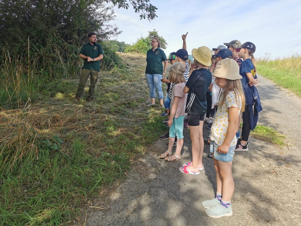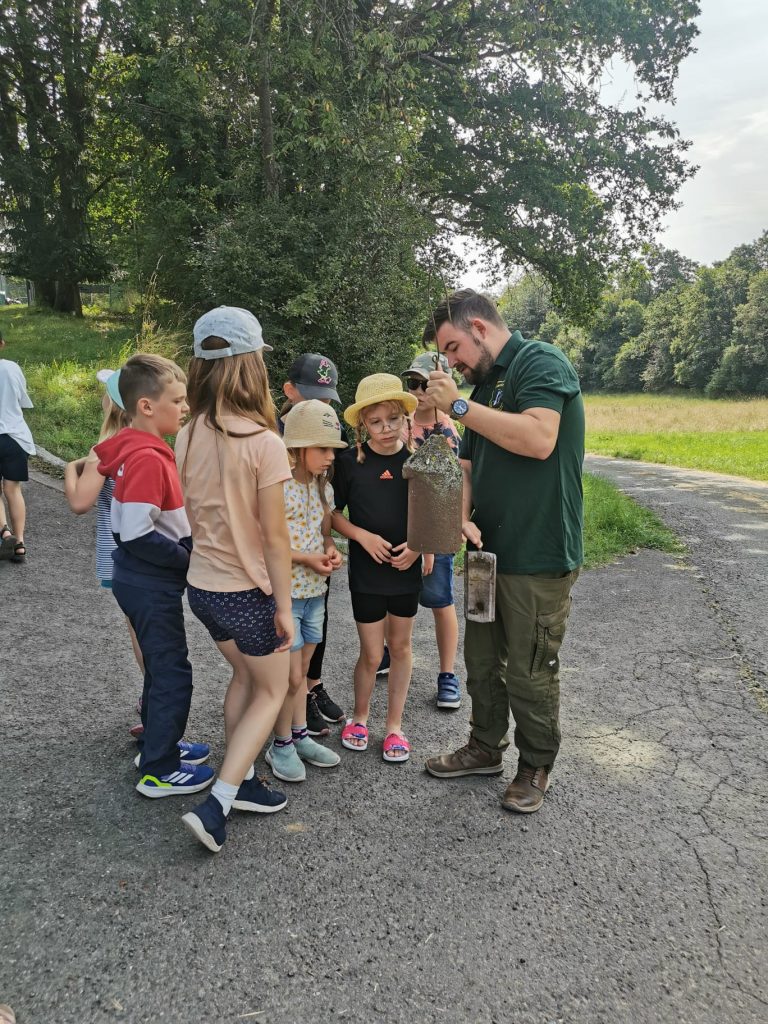 Wir haben den Kindern bei einem kleinen Spaziergang die Arbeit unserer Revierwarte gezeigt und haben einen Blick in einen unserer Nistkästen geworfen. Hier konnten die Kindern sich das Nest einer Kohlmeise anschauen, die Bewohner waren aber, wie zu erwarten, schon ausgezogen. Hierbei wurden auch alle Kinder nochmal darauf hingewiesen, dass sie niemals ohne uns einen unserer rund 500 Nistkästen in Katzenfurt öffnen dürfen.