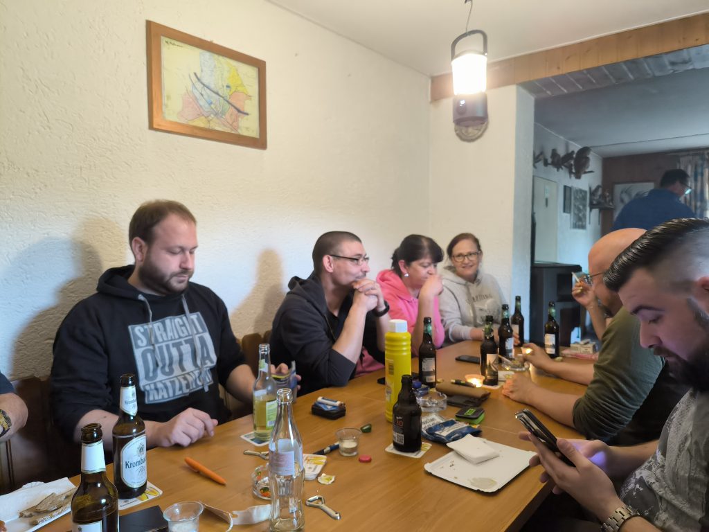 An jedem ersten Freitag im Monat öffnen wir ab 17 Uhr unser gemütliches Vereinsheim im Volkersbach. Hierbei steht gemütliches Beisammensein im Vordergrund. Egal ob Mitglied in unserem Verein oder nicht, hier treffen sich jung und alt auf ein kühles Getränk und tauschen sich aus. Im Winter und bei schlechtem Wetter findet man uns in unsere Vereinsheim, doch sobald es die Temperaturen und das Wetter es zulassen, wird es sich draußen gemütlich gemacht und Natur genossen. Komm doch auch Du beim nächsten Hüttenabend vorbei, wir freuen uns über jedes neue Gesicht.