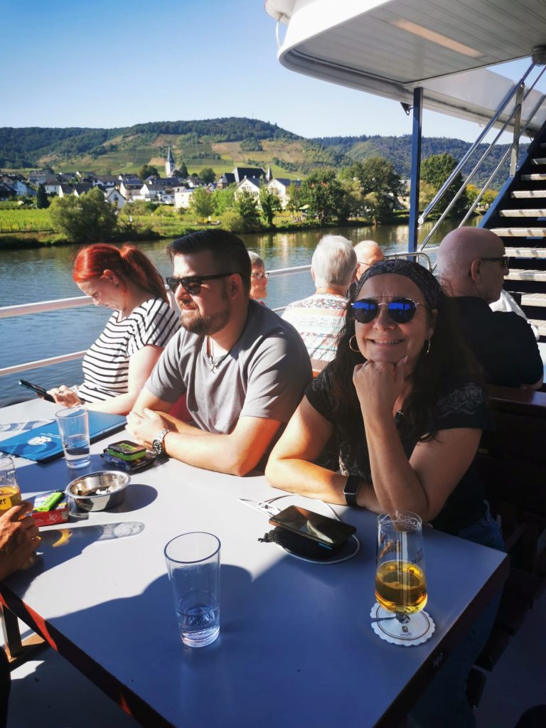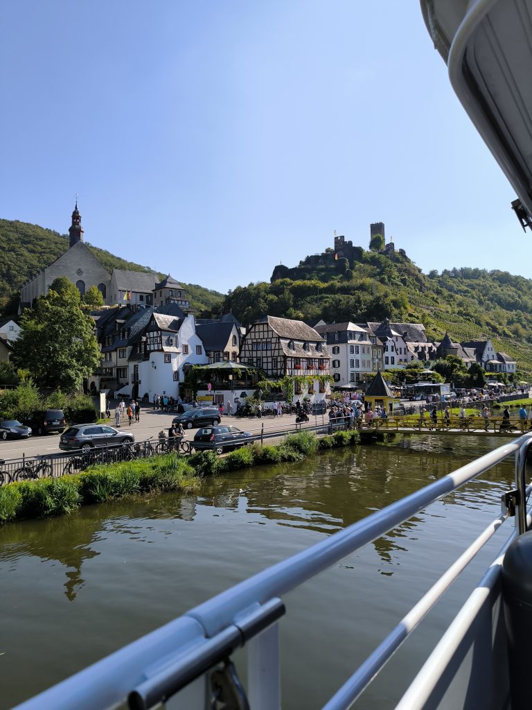 Dann ging es auch schon aufs Schiff. Um 13.30 Uhr starteten wir auf eine gut zweistündige Rundfahrt mit traumhaften Aussichten auf die malerischen Landschaften an der Mosel entlang. Von Cochem ging es vorbei an der Reichsburg durch die Schleuse bei Fankel bis Beilstein und wieder zurück.